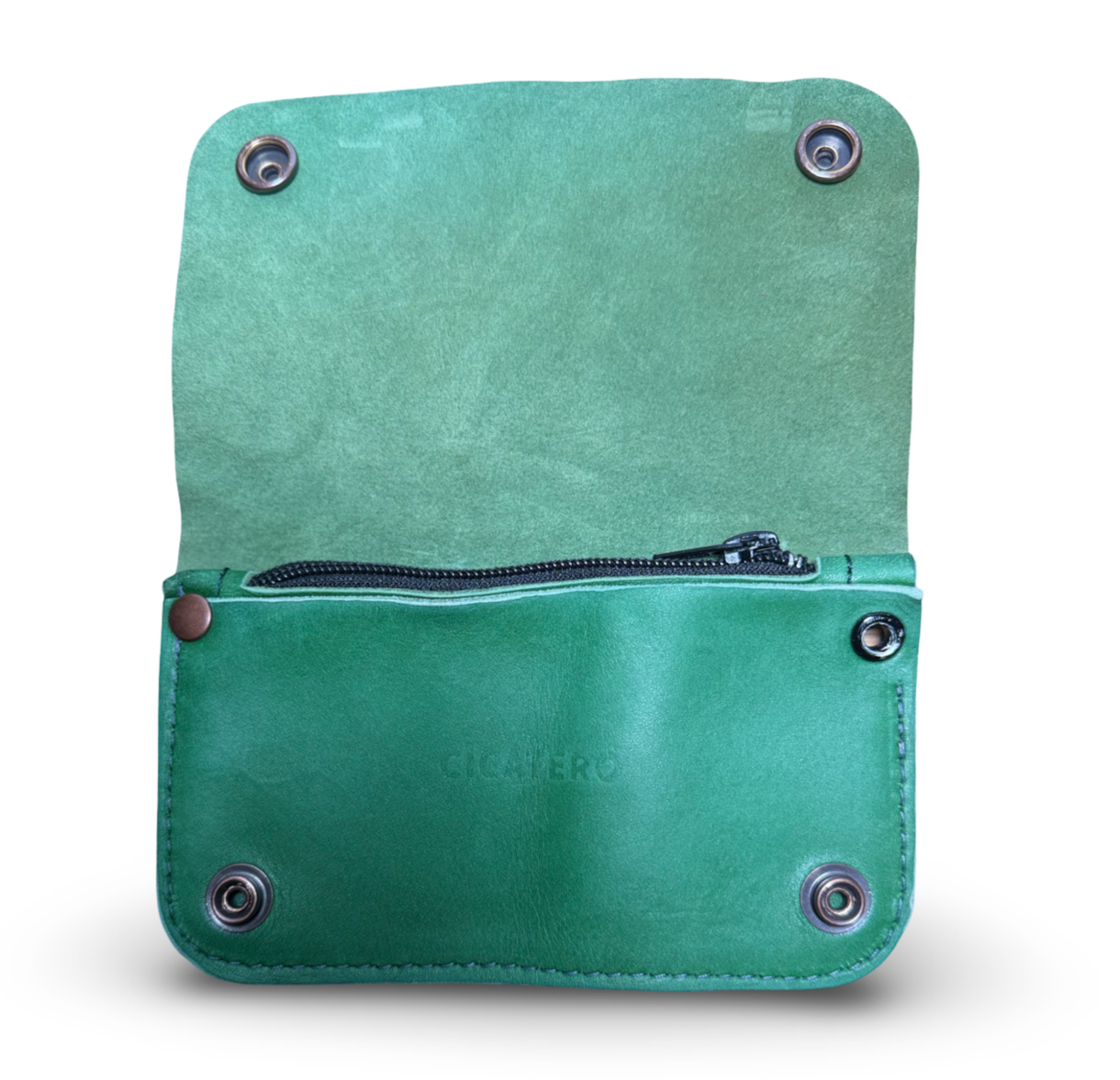 Se presenta en acabado envejecido AGED en color verde KAWASAKI. El proceso de envejecido tarda 3 días en realizarse y hace que cada pieza sea única.