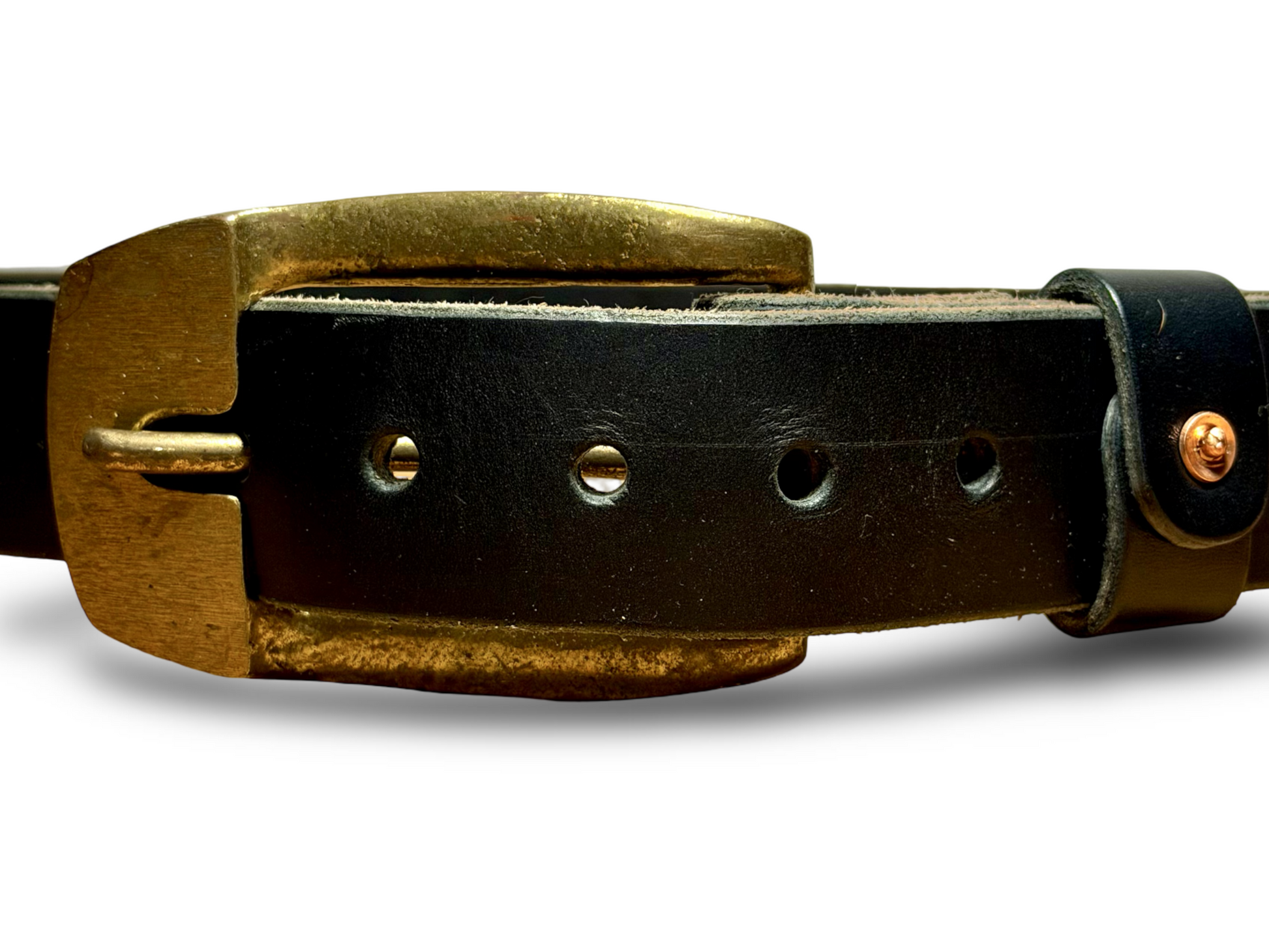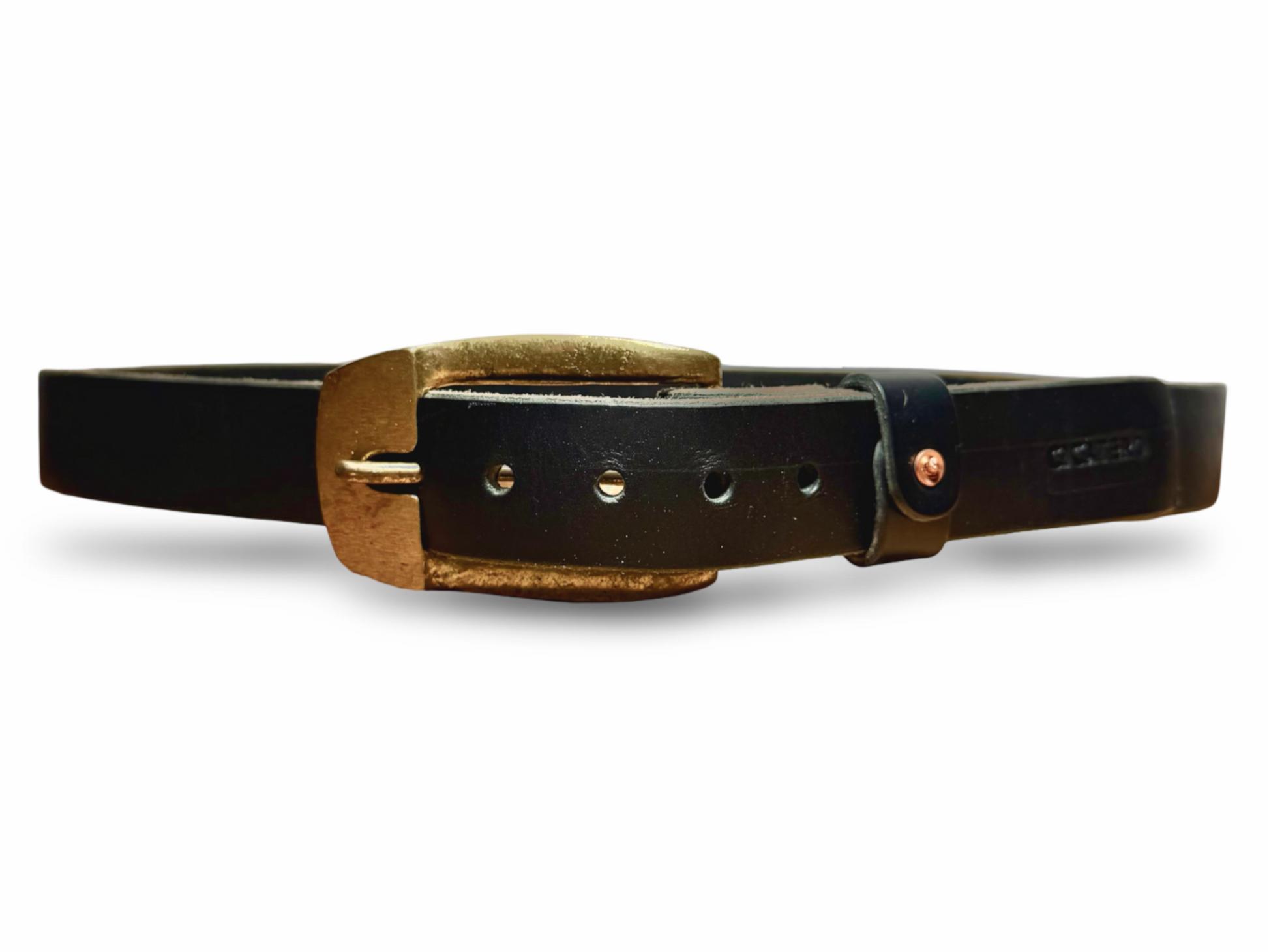 El cinturón se completa con resistentes remaches de cobre macizo al golpe que son los mismos con los que se hacían los cinturones más de 100 años.