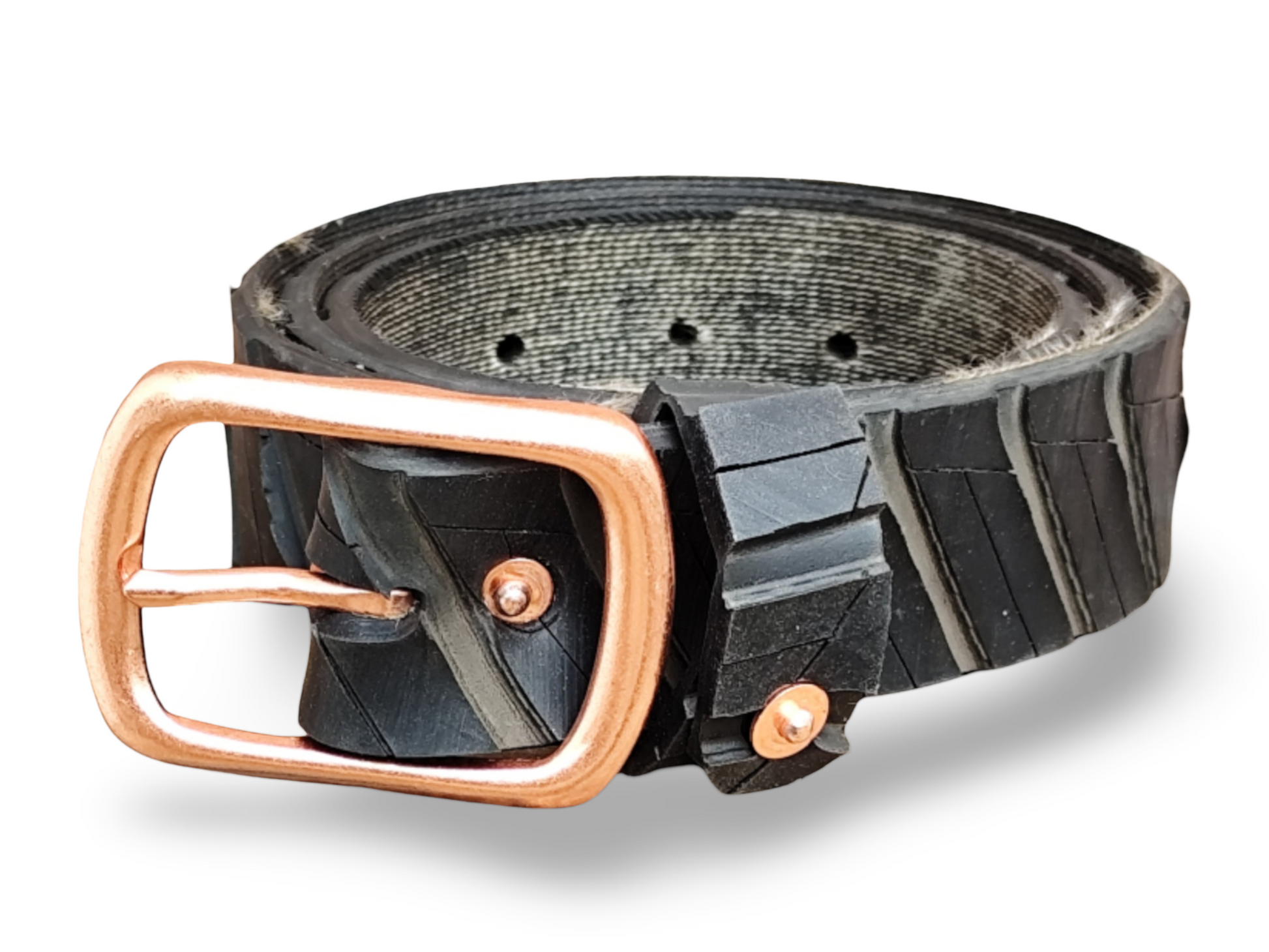 Creamos el cinturón NEWMAN con una rueda de coche que reciclamos para dar una segunda vida durante muchos años y así reducir las emisiones.