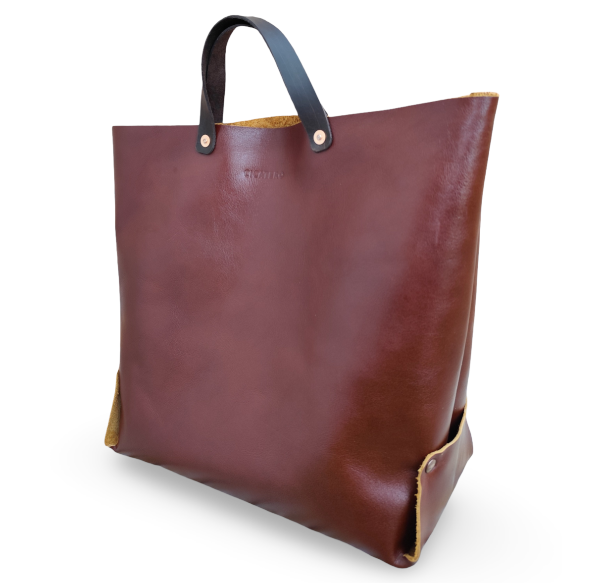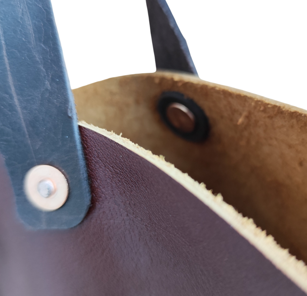 Utilizamos cobre macizo al golpe para unir las correas al cuerpo del bolso.